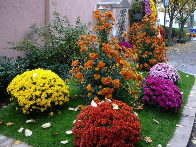 Ακολουθούν μερικές φωτογραφίες που απεικονίζουν τη χρήση χρυσάνθεμων ψεκασμού στην διακοσμητική κηπουρική.