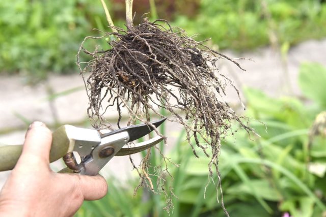 Το εξαγόμενο λουλούδι εξετάζεται, οι ρίζες συντομεύονται στα 15-20 εκ. Εάν ο θάμνος είναι αρκετά ώριμος και διακλαδισμένος, τότε μπορεί να χωριστεί σε διάφορα μέρη, καθένα από τα οποία θα πρέπει να περιέχει 4-5 βλαστούς με το δικό του ριζικό σύστημα.