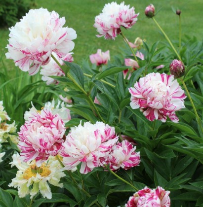 Το Peony Candy Stripe διακοσμεί τον κήπο με τα ζωηρόχρωμα λουλούδια και τα πράσινα φύλλα