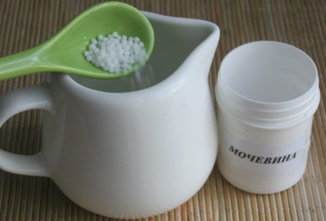 Όταν εμφανίζεται εναέρια βλάστηση, οι παιώνιες ποτίζονται με διάλυμα που λαμβάνεται από 50 g ουρίας, αραιωμένο σε 10 λίτρα νερού.