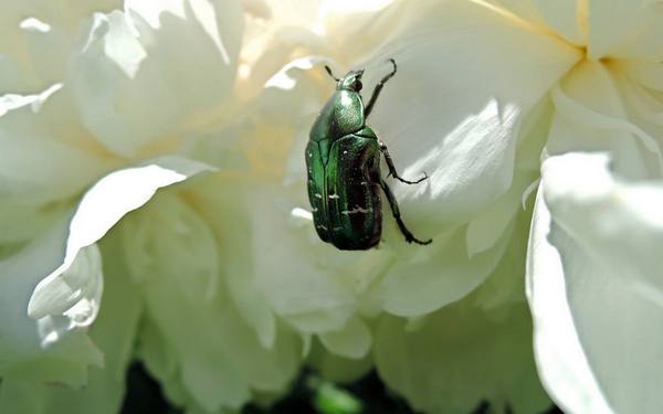 - Μπρονζόβκα - ο λαιμός σκαθάρι τρέφεται με στελέχη, φύλλα και πέταλα παιώνιες.