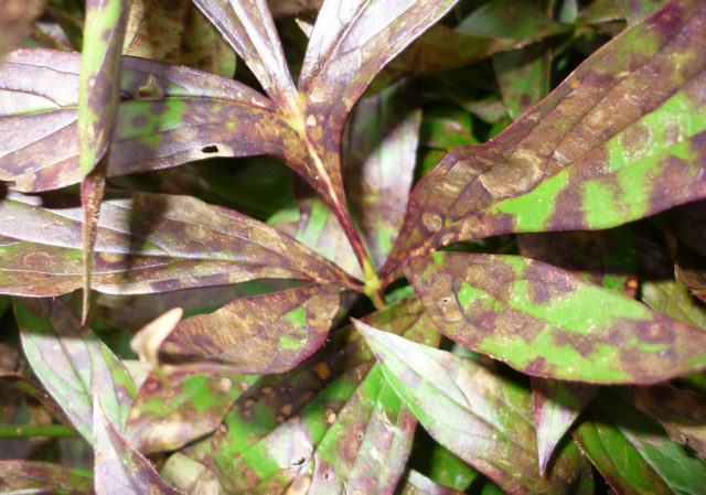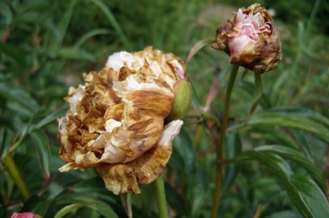 Η μυκητιακή νόσος προσβάλλει μόνο ενήλικες παιώνιες, τα φύλλα των οποίων παραμορφώνονται και στεγνώνουν