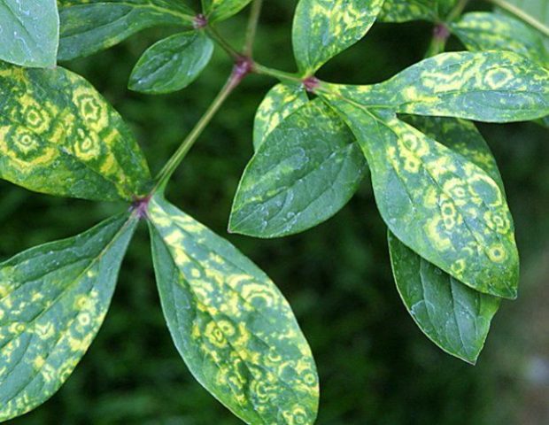 - Δαχτυλίδι μωσαϊκό. Κίτρινα-πράσινα δαχτυλίδια και ρίγες εμφανίζονται στα φύλλα παιώνιες.