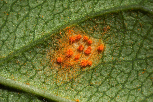- Σκουριά. Εύκολα αναγνωρίζεται από το σχηματισμό κίτρινων σπορίων στην κάτω πλευρά των φύλλων μετά την ανθοφορία.