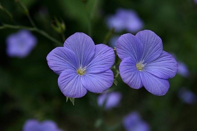Σε μια μεγάλη ποικιλία διακοσμητικού λίνου, μπορείτε να βρείτε ποικιλίες με μπλε χρώμα του λουλουδιού, για παράδειγμα, "Narbon flax" ή "Hard-haired flax". Αυτά τα φυτά χαμηλής ανάπτυξης δεν ξεπερνούν τα 40 εκ. Τα άνθη του λίνου "Narbon" είναι αρκετά μεγάλα, η διάμετρος τους είναι 3-4 cm.