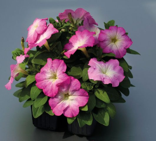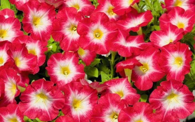 Δίχρωμη ποικιλία πετούνιας με μικρό μέγεθος και σταθερή συνήθεια καθ 'όλη τη διάρκεια της σεζόν. Το ύψος του διακλαδισμένου θάμνου δεν υπερβαίνει τα 25-30 εκ. Οι βλαστοί είναι πυκνά φυλλώδεις.Τα λουλούδια κατά μήκος της άκρης έχουν ένα ευρύ ροζ-κόκκινο περίγραμμα, και στη μέση του γραμμοφώνου υπάρχει μια ελαφριά σκιά κρέμας με ένα φωτεινό κίτρινο κέντρο. Αυτό δίνει μια ιδιαίτερη αντίθεση σε αυτήν την εμφάνιση.