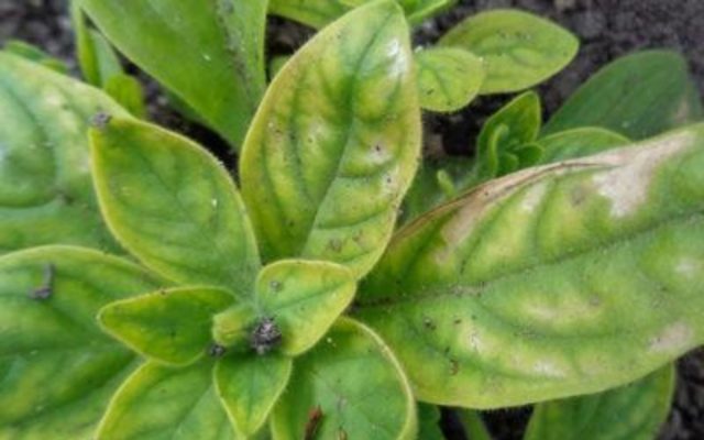 - Χλώρωση... Η ασθένεια στην πετούνια Mambo αναπτύσσεται με έλλειψη σιδήρου στο έδαφος. Χαρακτηρίζεται από μια ελαφριά σκιά φύλλων με σκούρες πράσινες φλέβες. Για τη θεραπεία, πρέπει να χρησιμοποιήσετε το "Iron Chelate".