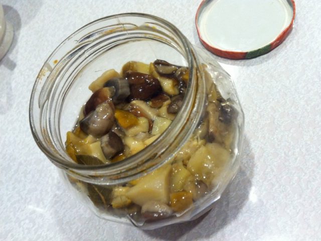 - Τακτοποιήστε τα μανιτάρια σε αποστειρωμένα βάζα, ρίξτε μαρινάδα στην κορυφή, τυλίξτε ή κλείστε με νάιλον καπάκια, αφήστε να κρυώσει.