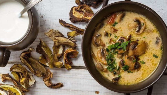 Η συνταγή για την παρασκευή σούπας μανιταριών από ξηρά μανιτάρια πορτσίνι με την προσθήκη ξινή κρέμα ή κρέμας είναι δημοφιλής στους διάσημους σεφ.Τα γαλακτοκομικά προϊόντα ενισχύουν τη γεύση του κύριου συστατικού, μαλακώνουν τη γεύση του και καθιστούν το πιάτο πιο ευαίσθητο και εκλεπτυσμένο.