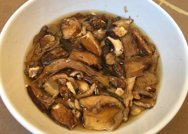 - Ρίξτε βραστό νερό πάνω από μανιτάρια πορτσίνι και αφήστε να αποκτήσει υγρασία για 30-45 λεπτά.