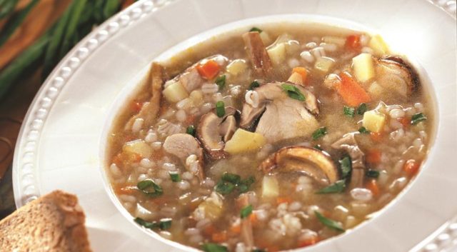 Για 1 μερίδα σούπας μανιταριών, λαμβάνεται μία κουταλιά της σούπας. μεγάλο. μαργαριτάρι κριθάρι