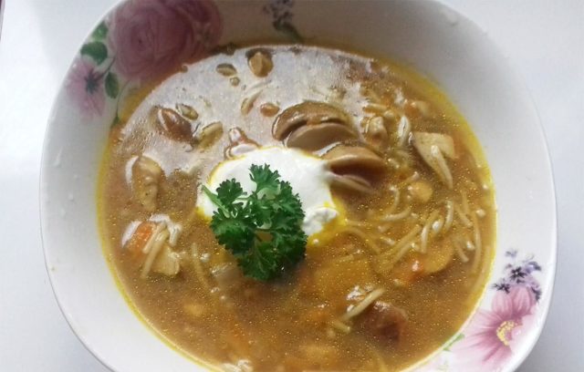 Νόστιμη σούπα με αποξηραμένα μανιτάρια πορτσίνι, ξινή κρέμα και αλεύρι