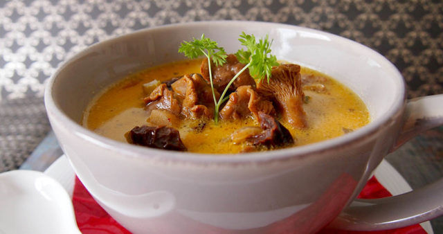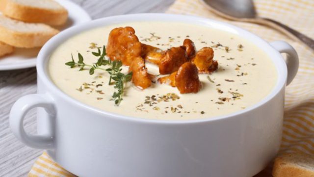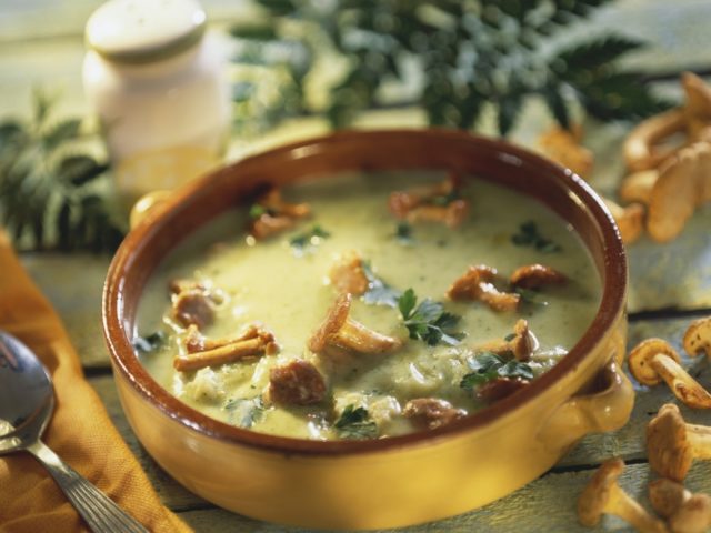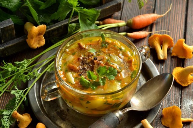 Τα Chanterelles θα προσθέσουν γεύση στα πρώτα πιάτα κρέατος, θα διαφοροποιήσουν το συνηθισμένο μενού. Για χορτοφάγους, αυτή η σούπα θα βοηθήσει στον κορεσμό του σώματος με υγιείς πρωτεΐνες.
