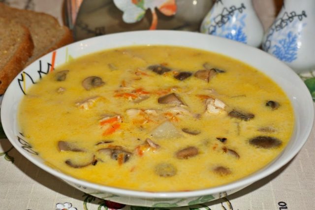 Τα κρεμώδη προϊόντα βελτιώνουν τέλεια τη γεύση των μανιταριών. Ως εκ τούτου, το τυρί προστίθεται συχνά στα πρώτα μαθήματα (ειδικά σε σούπες κρέμας).