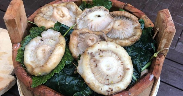 Ένας γρήγορος τρόπος για να μαζέψετε μανιτάρια γάλακτος με φύλλα κερασιάς και σταφίδας