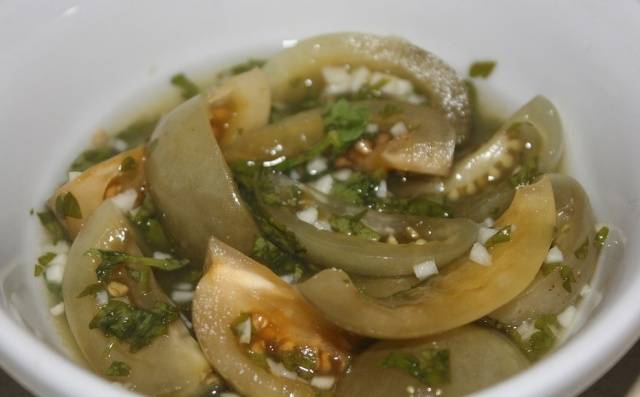 Γρήγορες πράσινες ντομάτες με σκόρδο