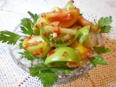 το ελαφρώς αλατισμένες πράσινες ντομάτες γρήγορο μαγείρεμα, καθώς το πιάτο μπορεί να σερβιριστεί στο τραπέζι σε μια μέρα. Καλούνται μερικές φορές ημερήσιες αποζημιώσεις.