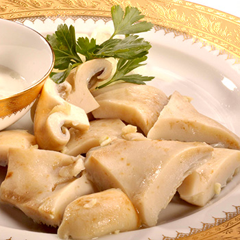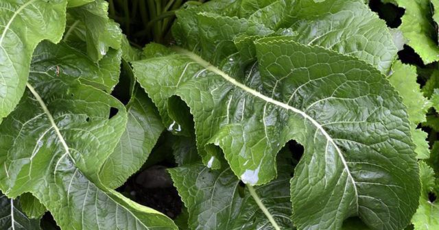 Τα φύλλα χρένου προσθέτουν μπαχαρικά στο πιάτο και τα μανιτάρια βοηθούν στη διατήρηση της έμφυτης ελαστικότητάς τους.