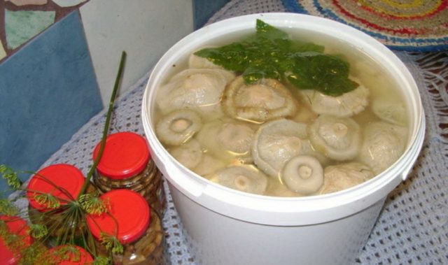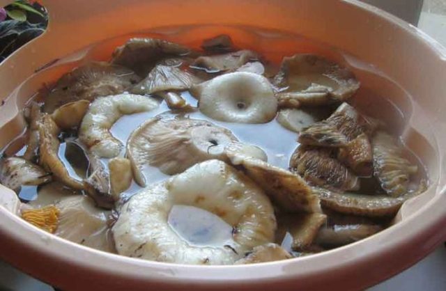 - Το φορτίο καθαρίζεται καλά, πλένεται και βυθίζεται σε καθαρό κρύο νερό για 2-3 ημέρες (το υγρό πρέπει να αλλάζει περιοδικά). Είναι καλύτερα να κόψετε τα πόδια των μανιταριών.
