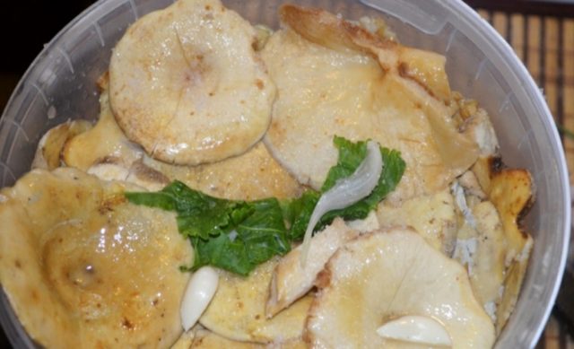Κρύο αλάτισμα ξηρών μανιταριών γάλακτος με σκόρδο και βότανα