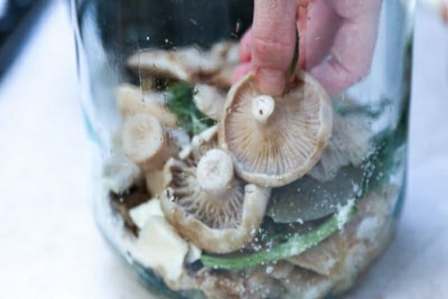 - Μετά από 5-7 ημέρες, τα καρποφόρα σώματα θα ηρεμήσουν και θα απελευθερώσουν το χυμό, στη συνέχεια μπορούν να μεταφερθούν σε αποστειρωμένα βάζα.