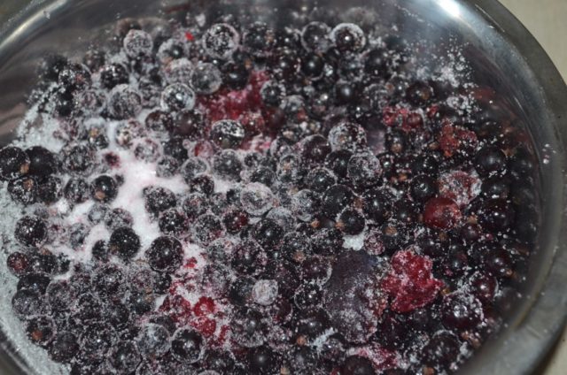 Προετοιμάστε τα ακόλουθα προϊόντα: σταφίδες (μαύρα, κατεψυγμένα) και ζάχαρη - σε αναλογία 1: 1.