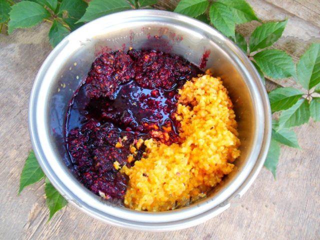 - Το πρωί, όταν τα μούρα δίνουν χυμό, αλέστε με ένα μπλέντερ. Οι νοικοκυρές, που δεν την έχουν, περνούν τη μάζα μέσω μύλου κρέατος.