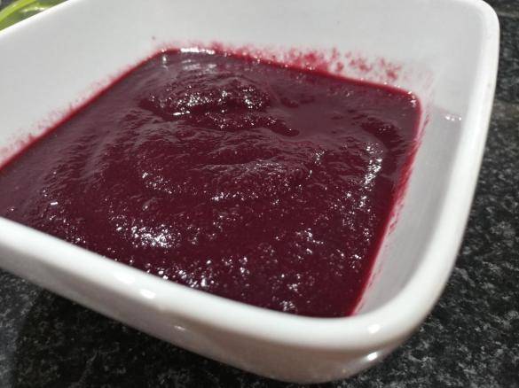 - αλέστε τα μούρα σε ομοιογενή μάζα (εάν χρησιμοποιείται κόσκινο, θα πρέπει να απορρίψετε το κέικ).