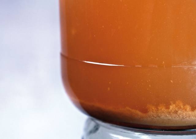 - Όταν η ζύμωση σταματά, ο μηλίτης μήλου χύνεται σε ένα νέο δοχείο, αφήνοντας ένα ίζημα στο κάτω μέρος.