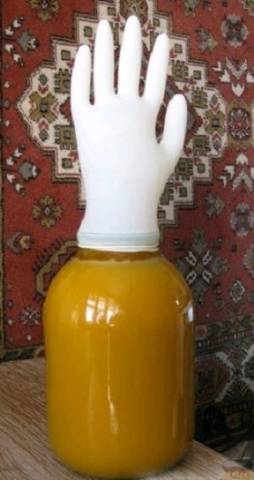 Οι τρύπες πρέπει να τρυπηθούν στα δάχτυλά της για να απελευθερώσουν αέρια. Για επιτυχή ζύμωση, η θερμοκρασία δωματίου πρέπει να είναι σταθερή και μεταξύ 17 και 25 βαθμών. Δεν μπορείτε να κρατήσετε το μελλοντικό κρασί στο φως. Μία φορά την ημέρα, το γάντι αφαιρείται για μερικά λεπτά έτσι ώστε τα αέρια να βγαίνουν γρηγορότερα. Μετά από ένα μήνα, το κρασί απομακρύνεται σε ένα ψυχρότερο δωμάτιο, στο οποίο είναι απαραίτητο να διατηρηθεί περίπου 15 βαθμοί, αλλά όχι λιγότερο από 10. Μετά από έναν άλλο μήνα, αποστραγγίζεται προσεκτικά από το ίζημα και εμφιαλώνεται. Μπορείτε ήδη να πιείτε αυτό το νεαρό κρασί. Αλλά θα έχει καλύτερη γεύση μετά την ωρίμανση για περίπου 4 μήνες. Η θερμοκρασία για αυτό πρέπει να είναι από 6 έως 10 βαθμούς Κελσίου.