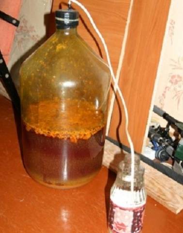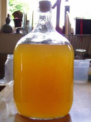 Το αρχικό στάδιο δεν διαφέρει από αυτό που δόθηκε στην προηγούμενη συνταγή. Αναμιγνύουμε το στραγγισμένο χυμό με νερό και μετά το δεύτερο στραγγίζουμε τη ζάχαρη. Μετά από μια μέρα έντονης ζύμωσης, βάζουμε γάντια στα μπουκάλια ή βάζουμε μια σφραγίδα νερού.