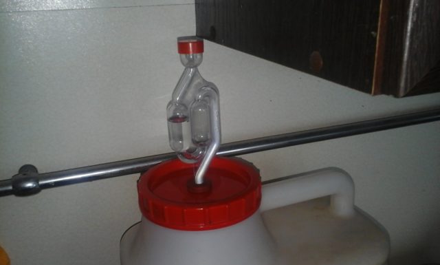 - Βάλτε μια σφραγίδα νερού στο λαιμό. Η ζύμωση θα διαρκέσει περίπου 14 ημέρες. Η διαδικασία ολοκληρώνεται όταν δεν εμφανίζονται φυσαλίδες για αρκετές ημέρες.
