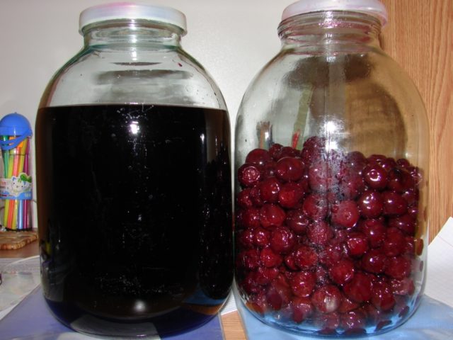 - Μετρήστε την απαιτούμενη ποσότητα χυμού κερασιού και σταφίδας. Μεταφορά σε γυάλινη φιάλη. Γλυκαίνω.