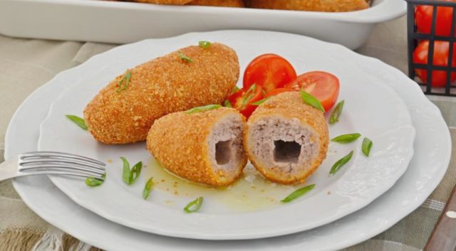 - Τα αυγά χτυπιούνται με μπαχαρικά. Οι προκύπτουσες μπάλες κρέατος πρέπει να τυλίγονται σε ψωμί, έπειτα σε ένα έτοιμο αυγό και πάλι σε ψίχουλα. Τα έτοιμα κοτολέτα τοποθετούνται στο ψυγείο για 20-25 λεπτά.