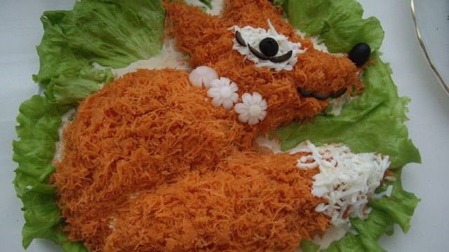 Σαλάτα με γούνα αλεπού με κοτόπουλο και καρότα