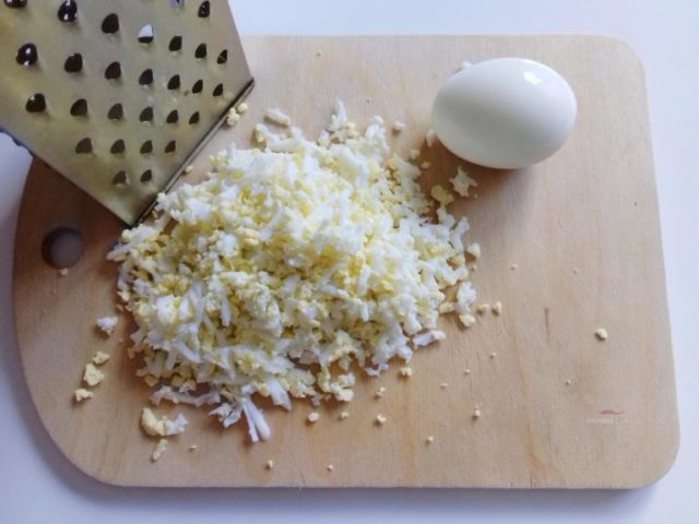 - Αλέστε τα βραστά αυγά σε ξεχωριστό μπολ. Μπορείτε να ψιλοκόψετε, να τρίψετε ή να διακόψετε σε ένα μπλέντερ.