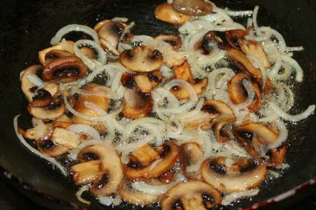 - Στην κλασική έκδοση του μαγειρέματος, χρησιμοποιούνται μανιτάρια, μπορεί να είναι μανιτάρια, μανιτάρια στρειδιών, μανιτάρια δάσους, πρέπει να τηγανίζονται.