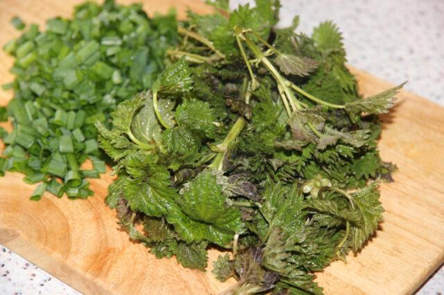 - πράσινα κρεμμύδια - 50 g (αν θέλετε, αν δεν το βάλετε, πρέπει να αυξήσετε ανάλογα τη μάζα της τσουκνίδας).