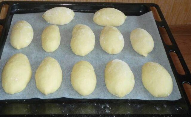 - Φτιάξτε πίτες, βάλτε σε ένα ταψί, βούρτσα με κρόκο. Ψήνουμε για περίπου μισή ώρα στο φούρνο στους 180 ° C.