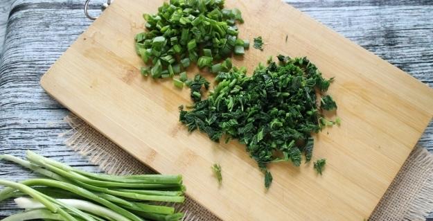 - Κόψτε το κρεμμύδι και τα φρέσκα τσουκνίδες.