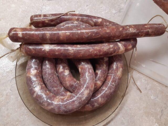 - Γεμίστε τα περιβλήματα, σχηματίστε τα λουκάνικα, κρεμάστε τα για μια ημέρα σε θερμοκρασία δωματίου.
