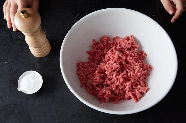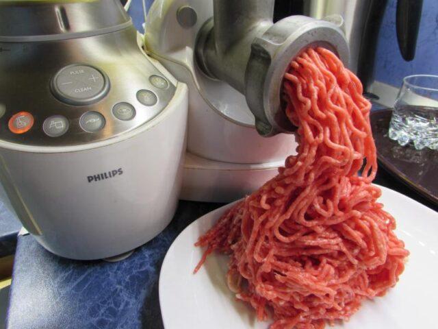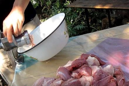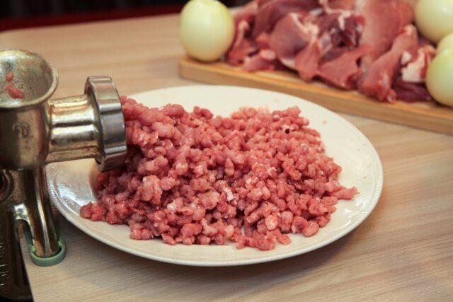 - Κυλήστε το άπαχο κρέας σε ένα μύλο κρέατος με μια μεγάλη σχάρα.