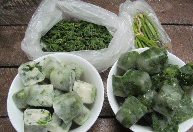 Τα επεξεργασμένα και ξηρά χόρτα λαμβάνονται μαζί με τους μίσχους. Μπορείτε να κόψετε με ένα μαχαίρι σε ένα ξύλο κοπής ή να χρησιμοποιήσετε ψαλίδι, όπως θέλετε. Υπάρχουν δύο τρόποι παγώματος: