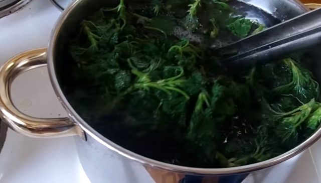 Για αυτήν τη μέθοδο, χρησιμοποιείται ένα νεαρό φυτό, συλλέγονται μόνο οι κορυφές, περίπου 10-12 cm το καθένα. Η επεξεργασία σε διάλυμα αλατιού μπορεί να παραλειφθεί, αρκεί να ξεπλύνετε καλά τη τσουκνίδα κάτω από τη βρύση.