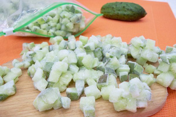 Αγγούρια κατεψυγμένα σε κύβους μπορούν να προστεθούν σε Olivier, okroshka και vinaigrette